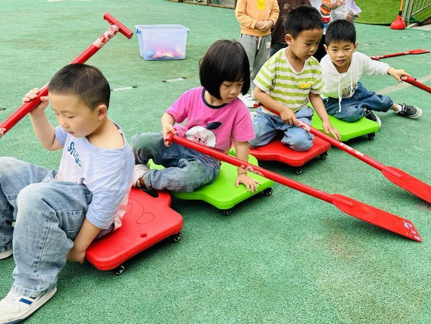 通过“端午知多少”“投五毒”和“赛龙舟”的游戏,孩子们了解了爱国诗人屈原的故事以及端午吃粽子、赛龙舟、戴五色绳等端午节习俗。