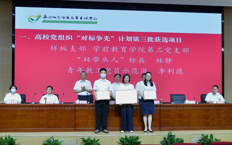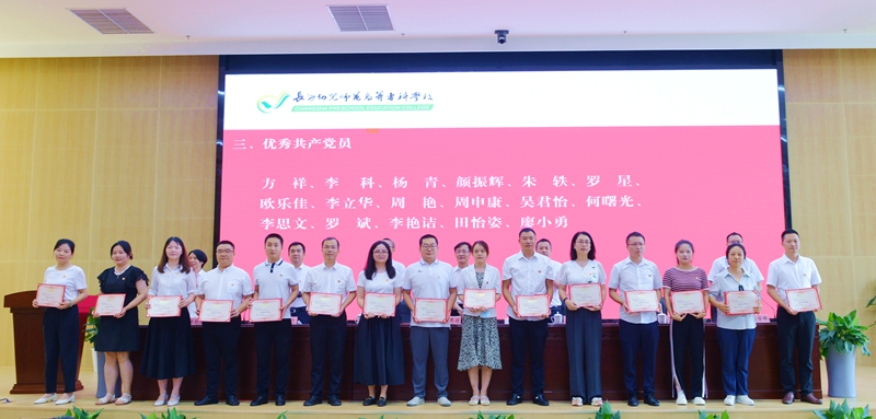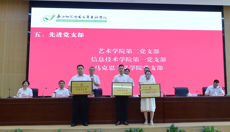 在建党102周年之际,学校党委隆重表彰了一批先进典型。党委副书记兼纪委书记李慧中宣读了《关于表彰 2022-2023 年度先进党支部、优秀共产党员、优秀党务工作者的决定》。3个高校党组织“对标争先”计划第三批获选项目、31名“校级优秀共产党员”、6名“优秀党务工作者”、3个“先进党支部”受到表彰,与会校领导为获奖集体和个人颁发了证书和奖牌。随后,新党员代表学前教育学院第三党支部周洁和优秀党员代表发言信息技术学院第一党支部书记方祥作典型发言。