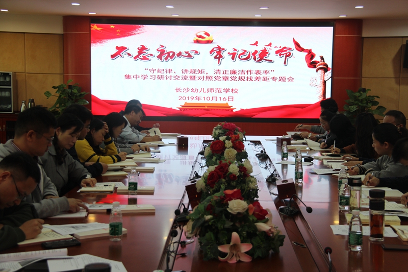 10月16日上午🥊,长沙幼儿师范学校党委中心组(扩大)在广益厅召开“不忘初心⛹🏿♂️、牢记使命”主题教育第二次学习研讨,围绕“守纪律、讲规矩,清正廉洁作表率”主题进行集中学习研讨并对照党章党规找差距谈整改。会议由党委书记张国斌主持,全体党委班子成员🚴🏼♂️、中层干部和支部书记20余人参加🤣。