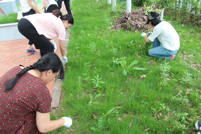 6月12日下午,40余名在职党员志愿者共同加入了美化校园的志愿者服务队伍,用辛勤汗水迎接缤纷盎然的盛夏。党员志愿者们带着手套、铁铲等工具,开始了爱绿护绿活动。在历时近两个小时的劳动中,大家的鞋都粘上了厚厚的黄泥,洁白的衣服添上了不一样的色彩……有的同志手被树枝划破皮了,有的同志累弯了腰坐在地上时手也没有歇过……大家一边劳动一边谈工作、谈生活,气氛融洽和谐。等到大家讨论完了,杂草也拔完了。除草结束后绿化带两边堆满了大家的劳动成果,一堆堆的杂草垒得高高的,草坪上只剩下整齐的花草。活动结束后,看到自己的劳动成果,大家都露出了喜悦的笑容。