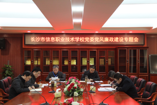 3月22日上午,长沙市信息职业技术学校党委在广益厅召开2017年党风廉政建设工作专题会议。学校领导班子全体成员参加会议。会议由党委书记张国斌同志主持。