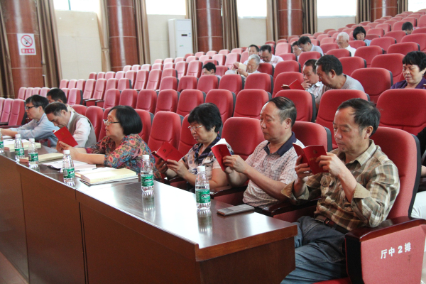 6月16日上午,我校组织召开了离退休党员干部“两学一做”学习教育专题会议。党委书记张国斌出席会议,并向党员同志赠送了学习教育资料——《习近平总书记系列重要讲话读本》、《中国共产党党章》及《中国共产党廉洁自律准则》、《中国共产党纪律处分条例》。学校工会副主席胡喜鸣主持会议并带领大家诵读党章。