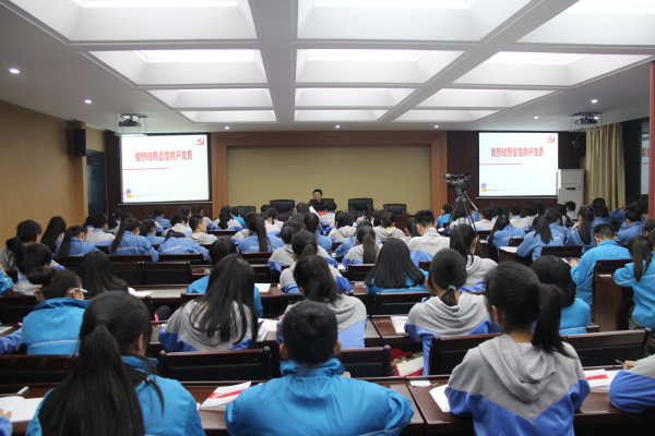 11月9日晚7点,长沙市信息职业技术学校宁觉厅热闹非常,整个会议室里洋溢着和谐氛围,同学们在掌声中迎来了这次党课的主讲——学校副校长李慧中。