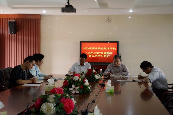10月22日下午,长沙市信息职业技术学校党委全体成员在广益厅召开专题会议,围绕“严以用权”主题,开展“三严三实”第三次专题教育学习第一阶段学习研讨。学校校长郭正良、党委书记张国斌、纪委书记李深山、副校长周文华等参加了研讨学习,办公室主任刘建乐列席会议。会议由党委书记张国斌主持。