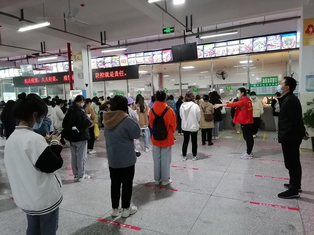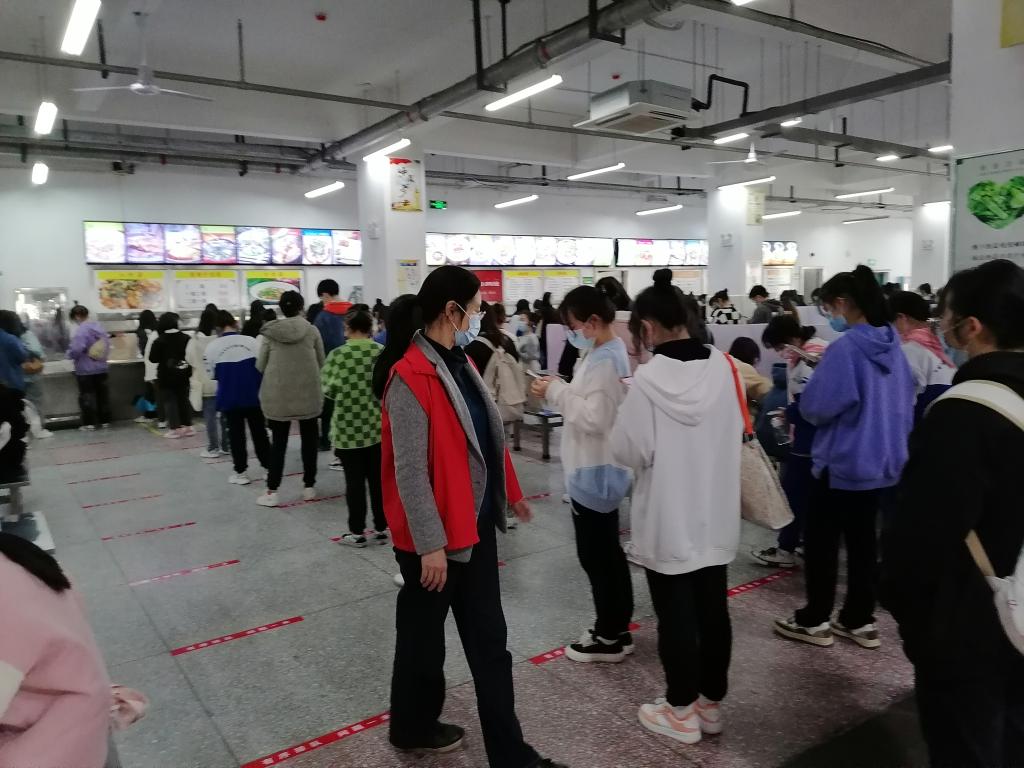 学生食堂就餐同样是校园防疫的重要关口,特护期间,学校安排了30名党员教师,每天中午在学生食堂分区域轮流值班,从11:50到12:30实行错峰就餐,提醒学生校园用餐的防疫要求。党员教师周申康在中午执勤时说:“老师们的想法很简单,就是尽量保证孩子们午餐吃得及时,吃得踏实,吃得安全,老师饿会儿肚子也值得!”在学校封闭式管理的特殊时刻,党员辅导员方祥充分发挥党员带头作用,每晚都要到学生寝室检查,多次为学生购买口罩、酒精湿巾等,和学生谈心谈话,确保学生全部归寝后才离开。