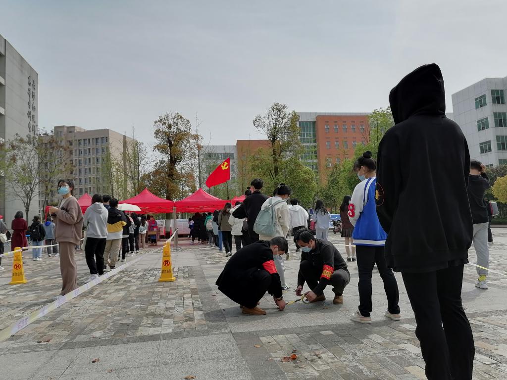 三月初以来,各党支部牢牢把握疫情防控主动权,迅速行动,激励带动全体师生,构筑起疫情防控的坚固防线。截止4月3日,学校已完成7轮近1.9万人次的核酸检测,每一次的核酸检测队伍中,处处可见党员志愿者“红马甲”。“如果还需要志愿者的话,一定记得安排我”这是党员教师谢嘉乐在微信群里的留言。3月18日以来,学校采取分时分批分点开展全员核酸检测,“宁觉”党员志愿服务队26名党员同志迅速集结组建“疫情防控突击队”,不讲条件、服从安排,按照培训和分工要求,克服种种困难,投入到协助医护采样、现场扫码咨询、排队秩序维持等工作中,不断提醒师生注意一米间隔,佩戴好口罩,确保检测工作有条不紊。