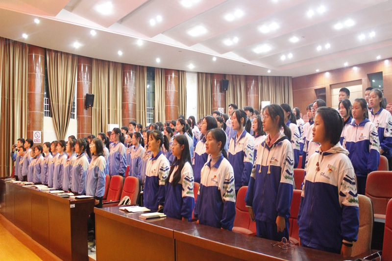为进一步坚定青年学生的共产主义理想信念,不断了解党、拥护党、热爱党、忠于党,10月17日,学校首届青年党校培训班在汇智厅隆重举行开班典礼。典礼由学校党委副书记兼纪委书记李慧中主持,学校校长郭正良、党委书记张国斌、副校长周文华、校团委副书记黄丽辉以及党员指导老师冯叶、周申康出席,来自学校各个班级的近100名优秀团员参加本次开班典礼。