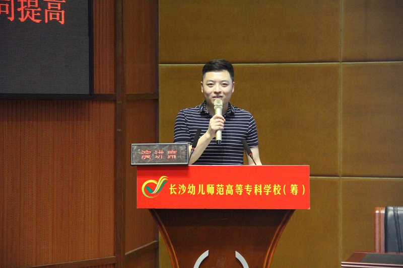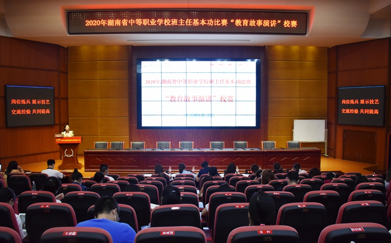 为深入贯彻落实习近平新时代中国特色社会主义思想,深刻学习领会习近平总书记在学校思想政治理论课教师座谈会上的重要讲话精神,落实立德树人根本任务,5月28日,我校班主任基本功比赛校赛暨教育故事演讲比赛在汇智厅隆重举行,学校15名班主任教师报名参赛,邀请了长沙市教科院职成所研究员周利波、学校校长助理兼学生工作科科长刘建乐、艺术系政治教研室朱凤英、学前教育系美术教研室陈郁、艺术系语文教研室主任尚明霞、公共课部思政教研室主任周艳、学前教育系理论教研室主任蒋珊珊等教师担任评委,比赛由学校学生科副科长兼团委副书记周申康主持。