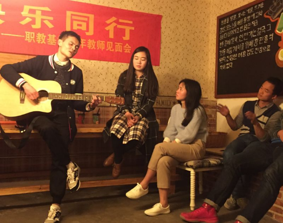 施弦明(长沙市电子工业学校)老师在分享环节时就相当活跃,“技能”环节更是出彩,除了体育舞蹈技能展示外,还展现了改编经典歌词的天赋——用音译“打个的,好得多,打个的,快的多……指导他人完成了一曲《忐忑》,他十足的幽默与智慧赢得了大家的阵阵开怀大笑。刘卓彦(长沙汽车工业学校)老师带来的自弹自唱,瞬间将活动现场变成了一个小型歌迷见面会,气氛着实热闹。