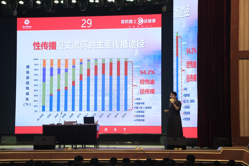 为了加强艾滋病防控工作,增强我校学生防病意识,遏制艾滋病的传播,为学生健康的青春与幸福的人生奠定良好基础,4月18日,由德兰光明基金会带来的艾滋病防控知识讲座在汇美馆隆重举行。本次讲座由我校学生科主办,同升街道健康促进委员会协办,主持人为湖南经视台主播王欢,省妇幼妇女儿童保健科副主任医生陈小英女士主讲。