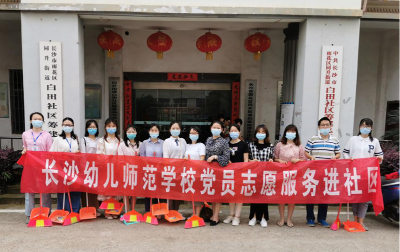 为加强党组织与社区之间、党员与社区群众之间的联系,倡导党员走出学校、深入社区,充分发挥党员先锋模范作用,5月27日,长沙幼儿师范学校学前教育系一、二、三支部全体党员利用午间休息时间赴白田社区开展 “党员服务进社区”主题党日活动。