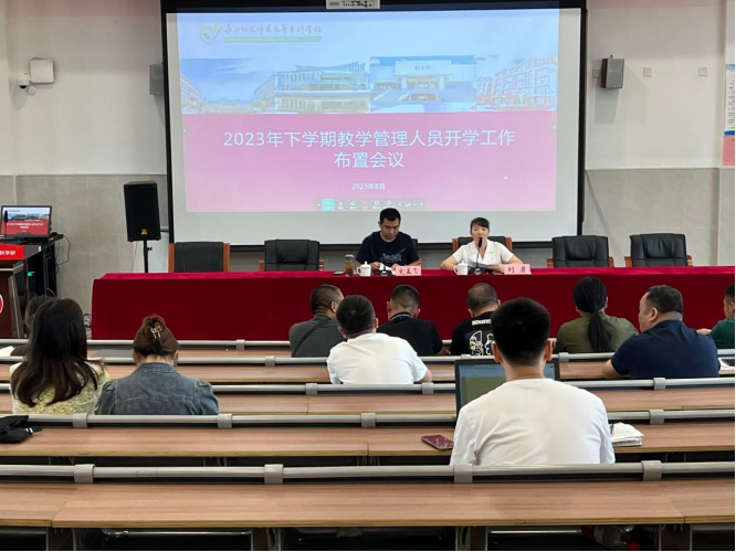 8月31日下午,神彩争霸8安卓下老版本在德馨楼132教室召开新学期教学管理人员工作部署会议,安排部署开学期间教学重点工作。副校长文孟飞出席了会议并做讲话,教务处全体人员、各二级学院(部)院长、教学副院长、各专业带头人、教研室主任、教学干事等参加了会议。会议由教务处副处长刘勇主持。