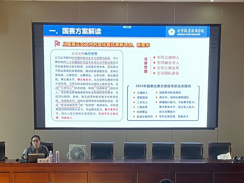 7月10日上午,金华职业技术大学教务处副处长李远远介绍国赛正式文件的变化,从三全育人、岗课赛证、三教改革、高水平、结构化教师教学创新团队、模块化课程、行动导向教学等多个方面解析职业院校教学能力比赛的备赛要点,以扫地为例展示如何将课程从源头进行模块化的破解和重构,现场的互动交流让老师们受益匪浅。