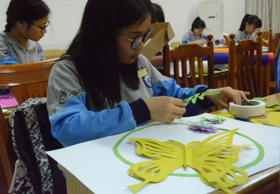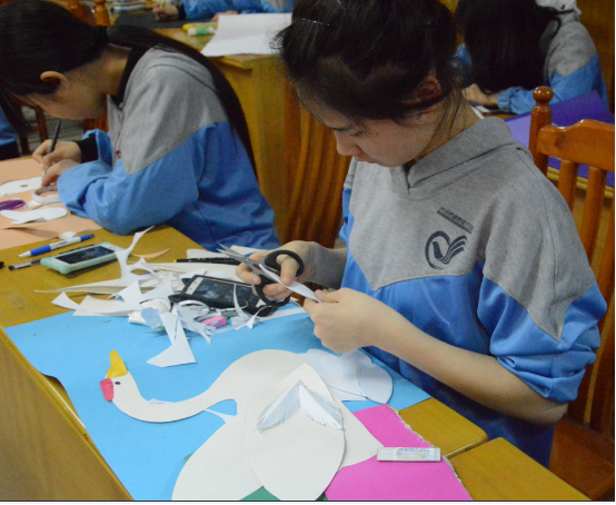 5月10日晚,首届“精艺杯”技能节的手工比赛在我校德馨楼318和418的教室开始了。参赛的选手主要是来自学前教育专业的同学们,竞赛时间为100分钟,竞赛方式为赛前命题,考验选手的单色纸浮雕创作与制作能力。