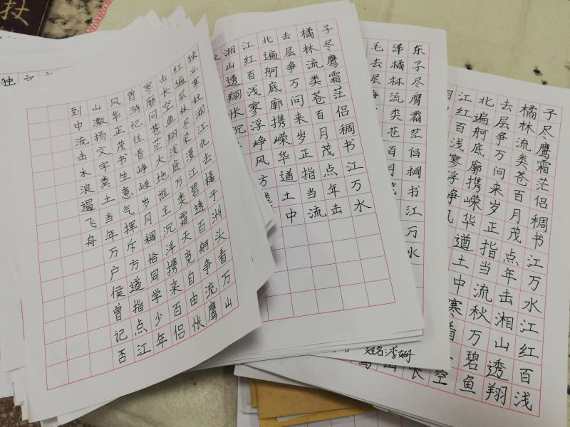 比赛过程中,选手们全神贯注,聚精会神的完成自己的作品。一根根小小的粉笔在粉笔字选手手中轻舞飞扬、飘逸洒脱,好似八仙过海各显神通般展现粉笔字的魅力;写毛笔字的选手运笔纯正、雄健有力,尽显毛笔的洒脱。作品或气质敦和浑厚、骨坚内润,或雍容大方、舒展开阔,圆转流美;写钢笔字的选手全力投入,精心书写,在有限的方格之间挥洒钢笔书写之豪气。比赛完毕后更有1715班同学主动留下打扫卫生,体现了良好的班风班貌。