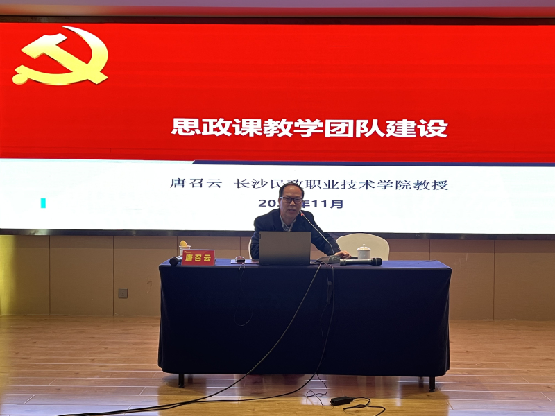 下午,邀请了长沙民政学院马克思主义学院唐召云教授来到培训现场,带来了《思政课团队建设》专题讲座。唐教授从建设优秀教学团队的必要性、焦旭东团队建设存在的主要问题以及建设优秀教学团队的主要路径三个方面进行讲授。整个讲座,唐教授语言生动风趣,直白诚恳;观点清晰深刻,直击要点。在座的思政老师们均表示受益匪浅。