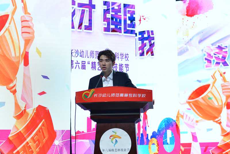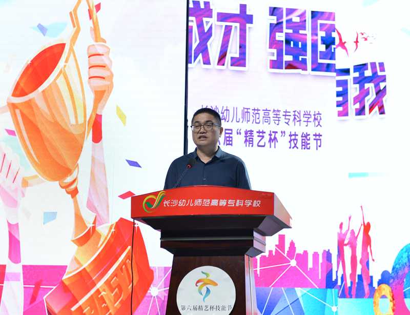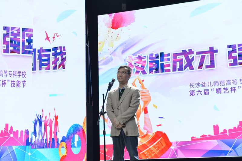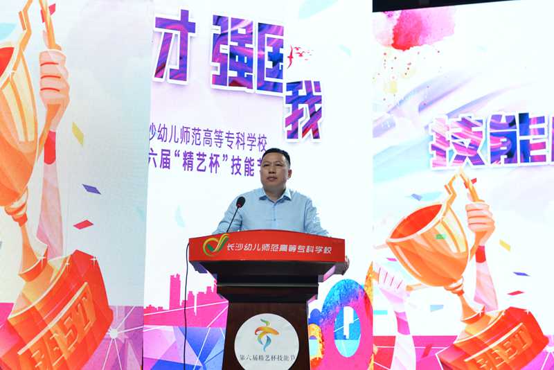 学校党委副书记、校长李毅致辞,他以“五有”凝练了长沙幼师高专建校以来的办学特点,总结了学校在技能培养、产教融合方面的育人成果,在促进城市经济、幼教事业发展方面做出的努力。他表示,技能节为学生提供了发展自我、发挥个性、挖掘潜能、团结协作的舞台,也将为学校积极参与国家级、省级竞赛选拔出优秀选手,为建设一流高质量的幼儿师专打下基础。