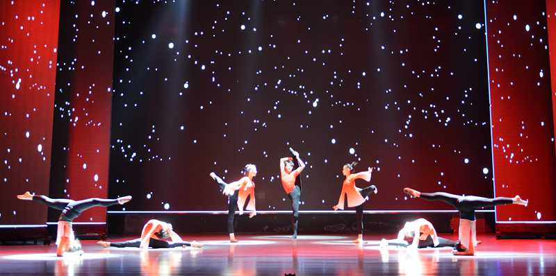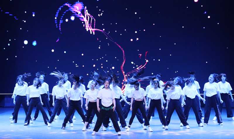 随后,全体师生一同观看了各专业技能组师生带来的成果展,6个舞蹈、演唱、朗诵节目的精彩演绎、技能队日常视频的呈现,爵士舞社的压轴动感舞蹈《舞动青春》燃爆全场,将开幕式推向了高潮。