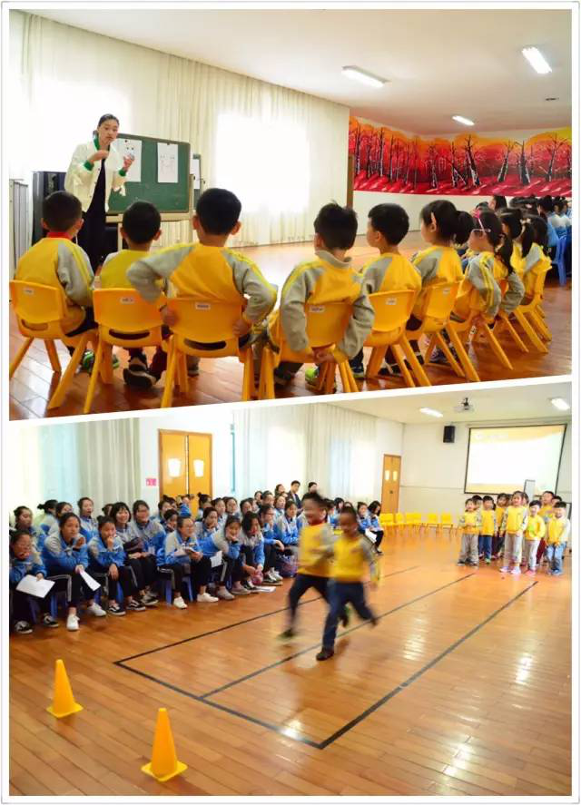 肖老师组织的大班社会活动《运动场上的规则》,运用亲身体验与集体、个别讨论相结合的方式,让孩子们在一次次趣味的竞赛中了解到运动场上规则的重要性。活动中,见习老师们也得到了孩子的邀请,一同参与游戏。