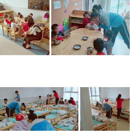 与此同时部分小朋友开展了班级户外活动,小朋友们认真勇敢,活泼可爱。小老师们帮助小朋友们吃午饭,给小朋友们叠衣服、叠被子,特别认真特别有爱心。