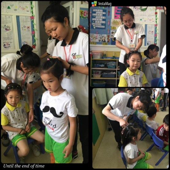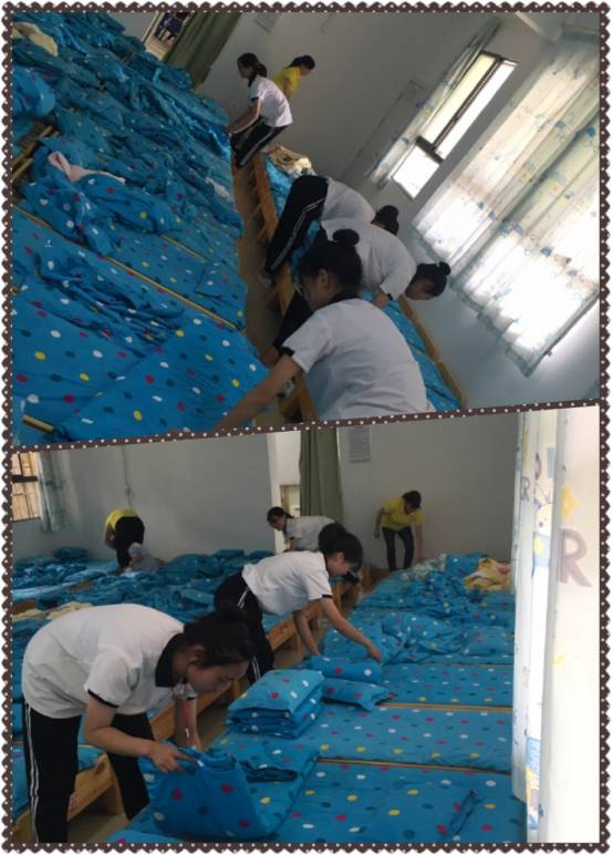 在课堂上,同学们认真听老师们的每一堂课并详细做好听课笔记,在户外活动中,同学们积极的参与其中,体能大循环的环节里,她们化身小朋友们的“天使”守护在小朋友们的身边,保护他们,鼓励他们。小朋友们午睡醒来,同学们分工协作,有的帮助保育员老师整理寝室,有的给小朋友们整理仪容仪表。这架势看起来,就是一个小老师嘛!