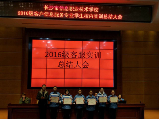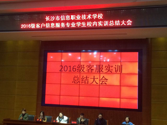 2018年1月3日,我校在汇智厅召开了2016级客服专业学生第一次校内实训总结大会,学校周文华副校长、教务科张学锋科长,深圳天云祥公司李娟总经理、邓颖经理,以及16级、17级客服班全体班主任及学生参加了大会,大会由朱萍老师主持。