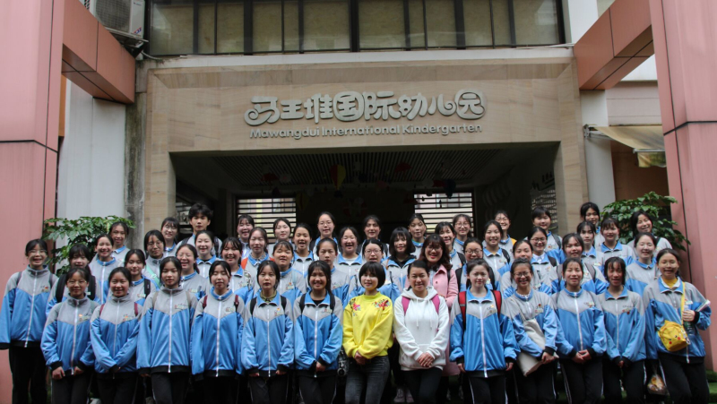 4月15日,长沙市信息技术学校1703班的48名同学在教务科刘晓和班主任曹婷的带领下来到了长沙市芙蓉区马王堆国际幼儿园见习👧🏽。