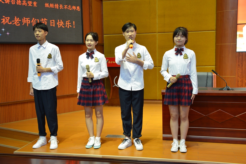 大会在庄严的国歌声中拉开帷幕。学生代表盛思璐、后天乐、骆祉璐、王瑞四位同学向全体教师深情献词,向老师们表达了节日的祝福。学校副校长许力军宣读《关于表彰2020年度“文明之星”的决定》,张学锋等14位老师评为“服务满意的好员工”,方祥等28位老师评为“学生满意的好老师”,黄莉敏等13位老师评为“学生喜爱的班主任”,全体学校领导为受表彰的教职工颁奖,杨祖爽和毛提老师主持颁奖典礼。
