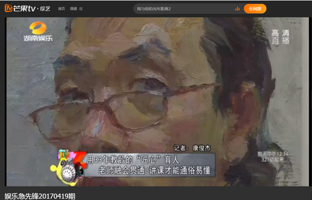 2017年4月19日湖南娱乐频道报道长沙艺术实验学校 《用33年教龄的“匠心”育人,老师融会贯通讲课才能通俗易懂》