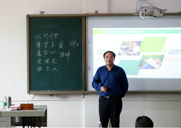 授课老师从一个互动游戏开始讲课,重点讲述了幼儿园教育要游戏化避免“小学化”,以游戏形式对幼儿施以各种教育,让幼儿在欢乐中学习知识,让现场来观摩学习的老师受益匪浅。