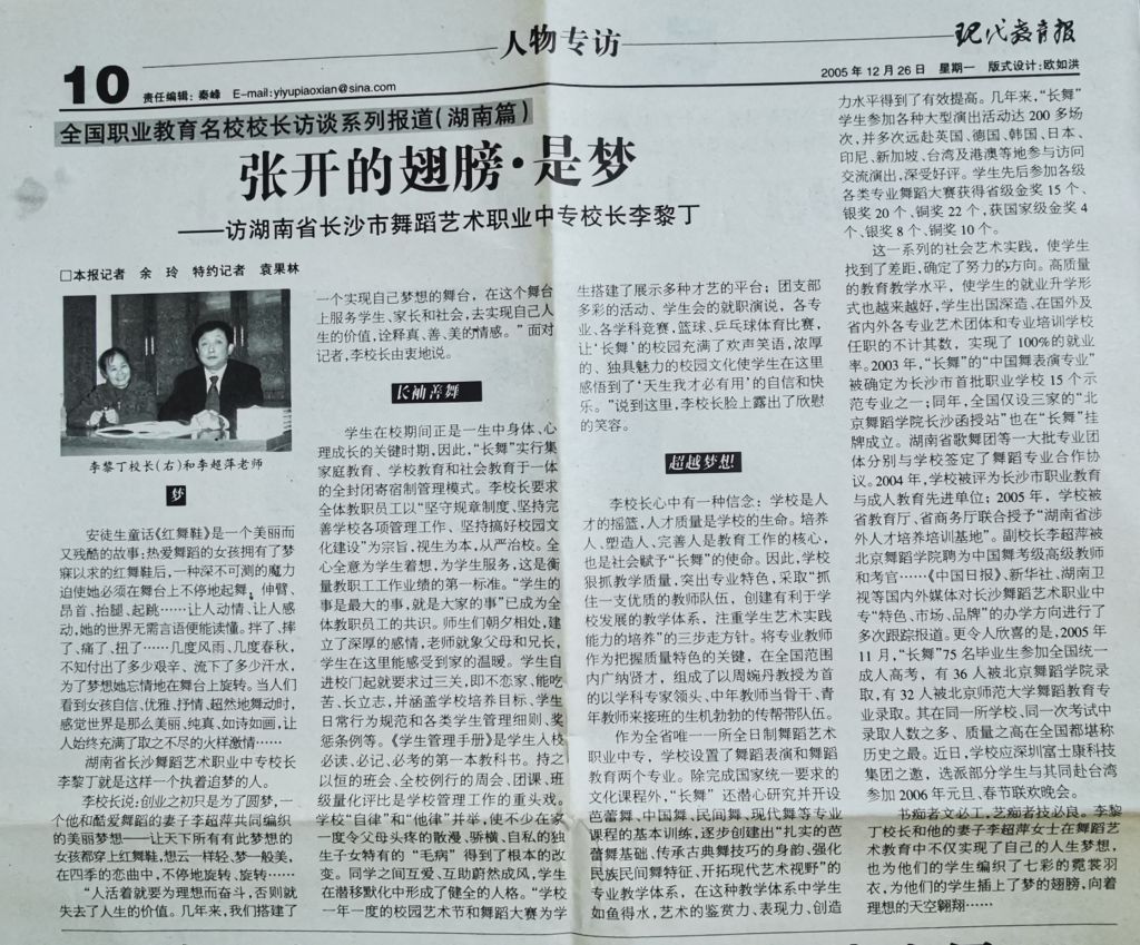 湖南省长沙舞蹈艺术职业中专校长李黎丁就是这样一个执着追梦的人。
