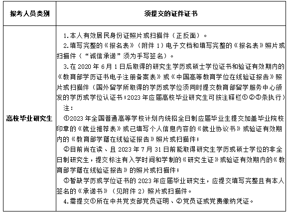 5、报考所需证件证书材料见下表: