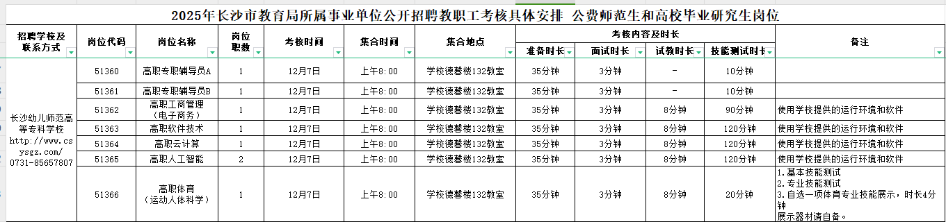 附件1:2025年长沙市教育局所属事业单位公开招聘教职工考核具体安排表 公费师范生和高校毕业研究生岗位