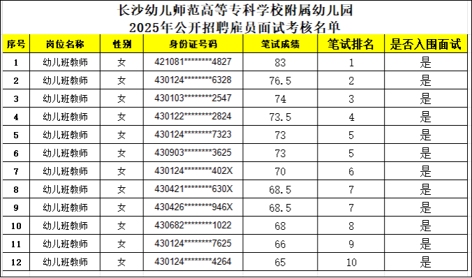 神彩争霸8安卓下老版本附属幼儿园2025年公开招聘雇员笔试工作已经结束,根据《神彩争霸8安卓下老版本附属幼儿园2025年公开招聘普通雇员简章》要求,笔试及资格初审合格人员将进入面试考核环节。现将入围面试考核人员名单和面试考核相关安排通知如下。