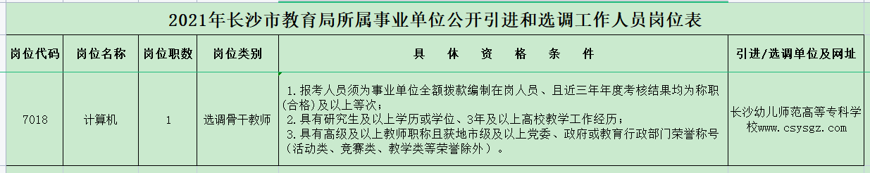 1、《2021年长沙市教育局所属事业单位公开引进和选调工作人员岗位表》