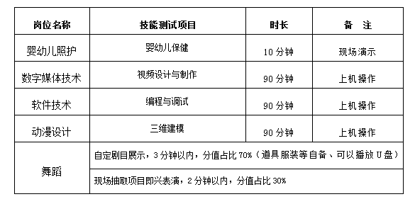 1.婴幼儿照护、数字媒体技术、软件技术、动漫设计、舞蹈岗位的考核由面试、试教和技能测试组成,电子商务岗位的考核由面试和试教组成。
