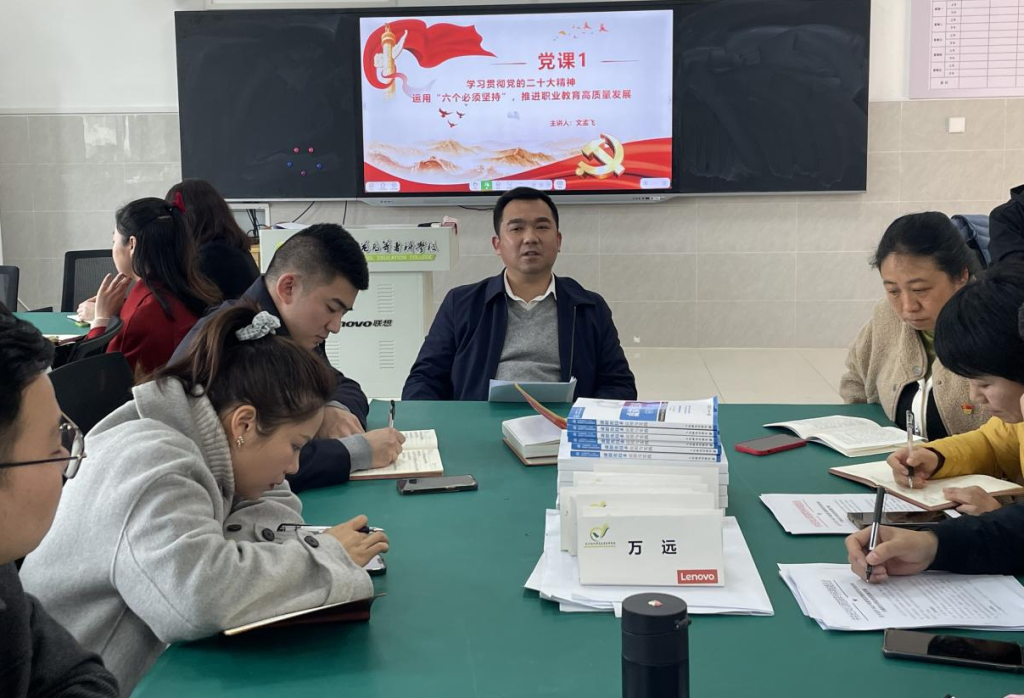 2023年3月2日信息技术学院党支部在技馨楼302党员活动室围绕“起航新征程 谋篇开新局”主题持续开展党的二十大精神专题学习,为准确领会二十大精神,副校长文孟飞组织党支部同志学习习近平总书记在二十届中央政治局第一次集体会议、二十届中央纪委二次全会上的重要讲话精神,运用好“六个必须坚持”,结合学校实际推进职业教育高质量发展,为同志们讲了一堂微党课。党总支书记李科从“实施科教兴国战略,强化现代化建设人才支撑”角度为信息技术学院党员同志们上了一堂微党课。信息技术学院两个党支部包括入党积极分子等同志都觉得获益匪浅。