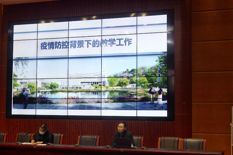 副校长文孟飞就总务后勤、安全保卫工作作说明,他从防疫物资准备与发放、疫情防控期间入校管理、校园消毒杀菌、师生就餐、疫情防控场地建设等工作进行了详细安排。
