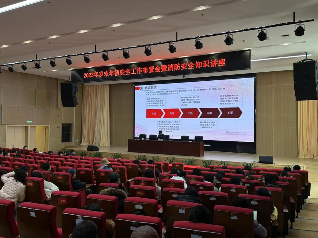 为进一步推动、落实学校安全稳定工作,12月28日下午2点,在图书馆报告厅召开2023年岁末年初安全工作布置会暨消防安全知识讲座,我校全体教职工及非核运营人员参加本次大会,会议由副校长周文华主持。