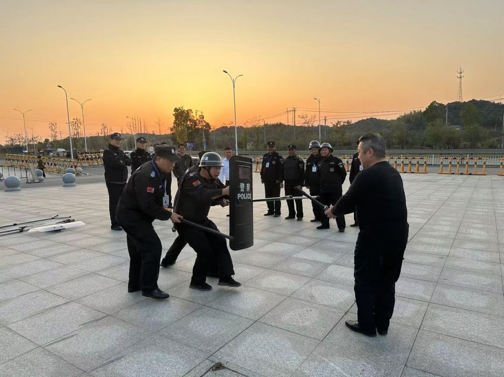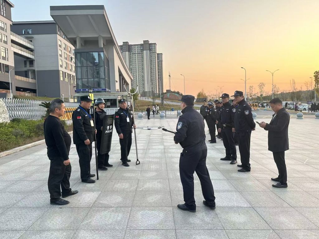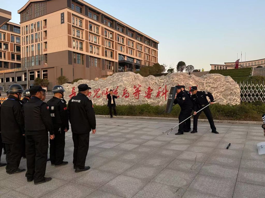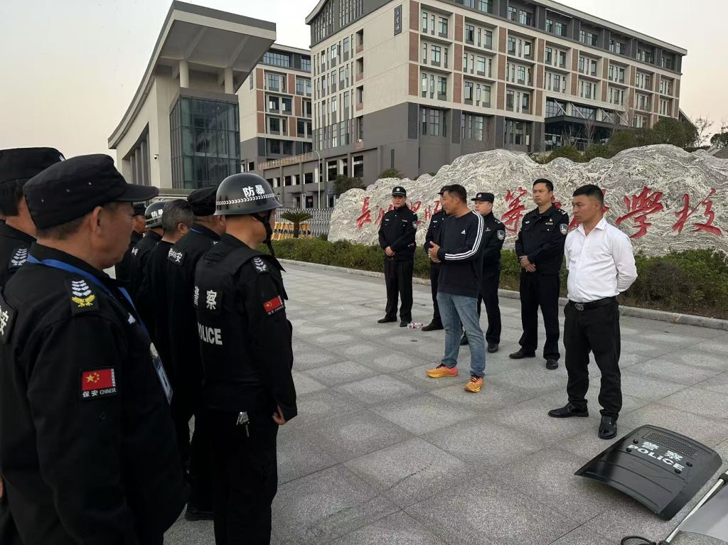 演练开始前,学生工作与安全保卫处处长兰帅👳🏼‍♂️、副处长罗星、夏铎铺派出所中队长张建明、民警曾旭分别对参加本次演练活动的学校保安人员及相关工作人员进行防暴力入侵知识安全培训👩🏼‍🎨,强化安全防范意识,明晰如何在第一时间做出反应,应对突发情况。
