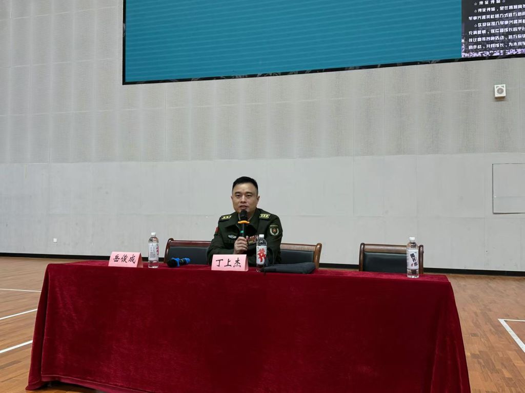 接着,丁上杰发表讲话,他提到入伍条件和退役士兵的诸多普惠政策,以及当代大学生投身于军旅的意义,军队现代化建设急需高学历人才,大学生入伍能将知识能力转化为强军力量。征兵入伍对个人成才、优秀品德的塑造影响深远,军营是淬炼意志的熔炉,纪律与磨炼可以帮助大学生褪去青涩、蜕变坚韧,培养家国情怀与责任感,可以让大学生在军队中培养坚韧不拔、吃苦耐劳、纪律严明等优秀品质,这对他们的个人成长和未来发展具有重要意义。