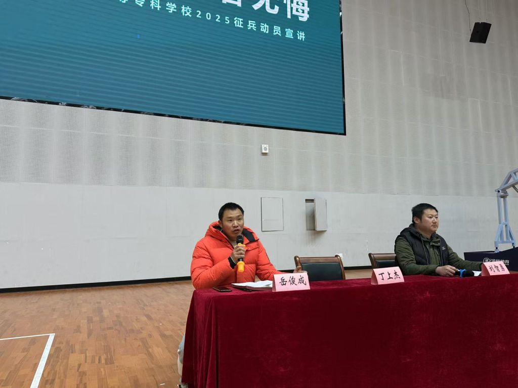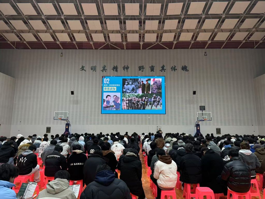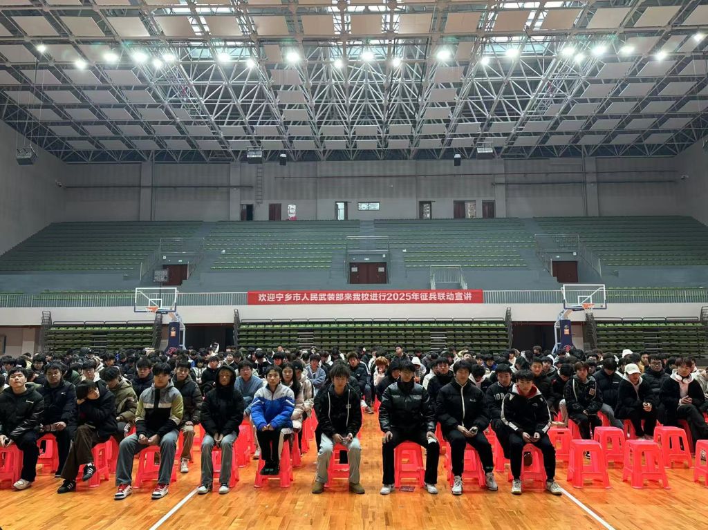 为深入贯彻落实征兵工作有关精神,鼓励和引导大学生积极应征入伍,激发学生报效祖国、献身国防的热情,12月24日下午两点,学生工作与安全保卫处、校武装部在体育馆篮球场隆重举行了在校大学生征兵宣讲活动。此次宣讲会由学生工作与安全保卫处副处长罗星主持,由宁乡市武装部政协委员丁上杰、部长岳俊成及我校军事理论课程负责人刘智勇老师进行宣讲,本次宣讲对象主要为男大学生共六百余人参加此次宣讲活动。