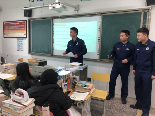 消防战士着蓝色的备勤服进行授课,让学生学习了必备的消防安全知识,比如拨打119后如何快速、正确表达;在学校宿舍如何快速逃生,如何采取应急措施等消防安全知识。