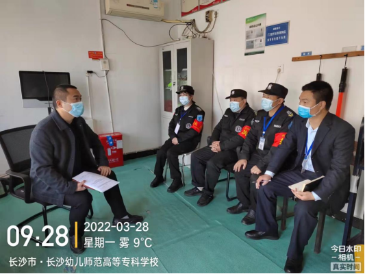 为进一步增强我校疫情防控工作的责任感,严格落实学校部署安排,恪尽职守,坚守岗位,全面落实好疫情防控安保工作,2022年3月28日上午,安全保卫处在4号大门保安室召开疫情防控培训会,会议由安全保卫处处长王锐主持,王斌、邹爱明、曾添二、邹明辉、孟建明、郑新勇、赵险峰、彭加参加。