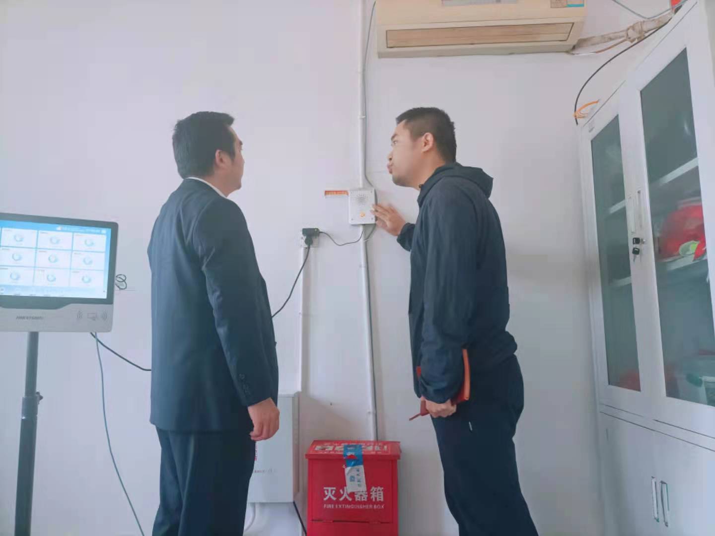 文孟飞检查一键式报警装置
