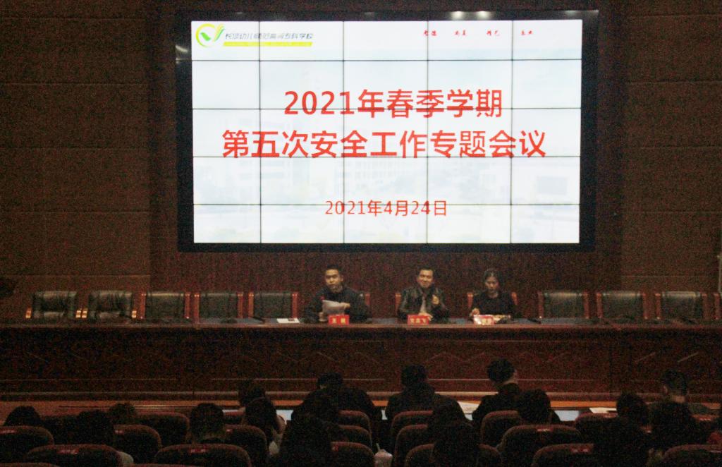 第五次安全工作专题会议。主管安全德育副校长文孟飞、安全保卫处处长王锐、学工处处长彭繁珍、各系部德育主任及全体班主任参加了此次会议。