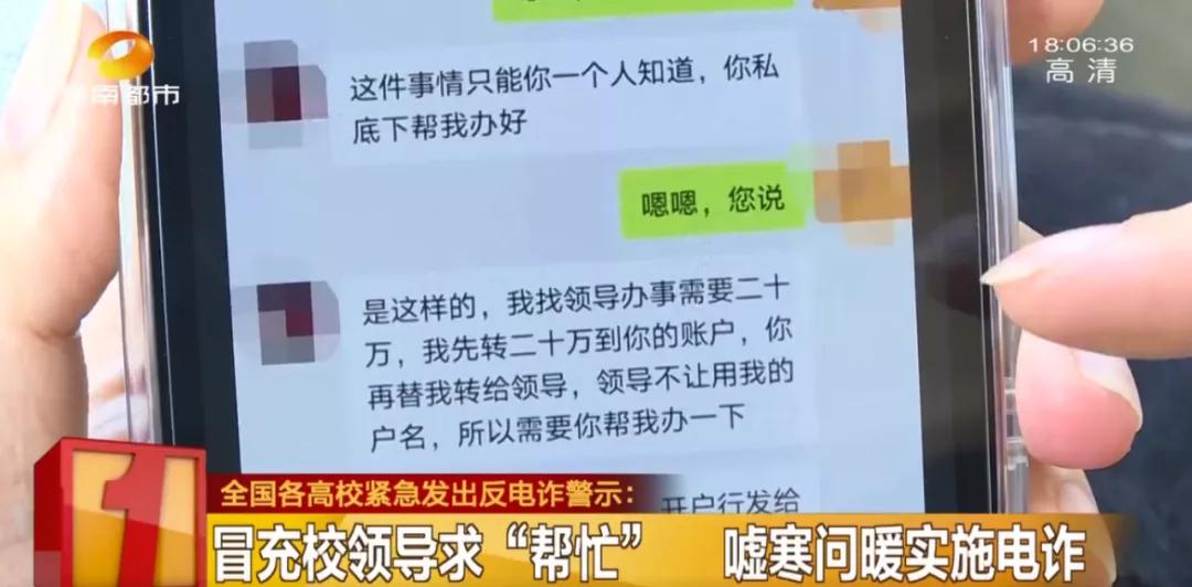 近日,全国多所高校网站紧急发布“关于防范冒充校领导进行诈骗的通知”,有不法分子通过盗取头像以及网名,冒充校领导、老师进行诈骗,警方提醒,广大市民、学生及家长提高防范意识,保护好个人财产。