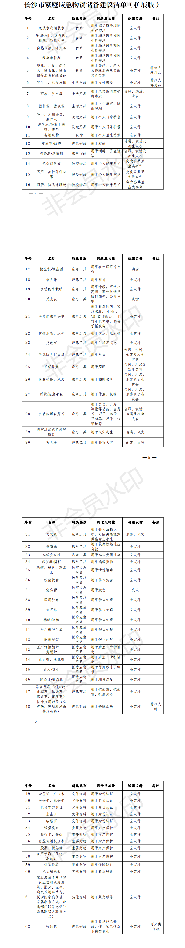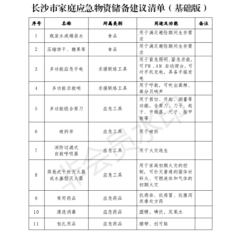 为提升我校全体师生自救能力,减少灾难带来的损失,引导大家积极储备必要的家庭应急物资,时刻准备应对可能发生的自然灾害等突发事件,现将长沙市家庭应急物资储备建议清单“基础版”、“扩展版”提供给大家。