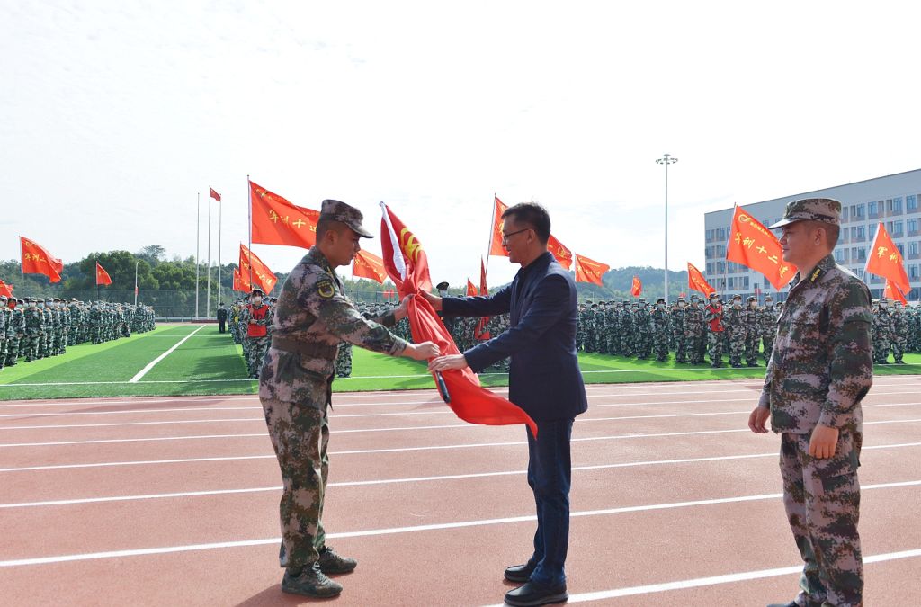 学校党委书记肖思源为军训团授旗。随后,由2022级学前教育学院余航、张圳杰、朱念、陈书之四位同学带来的深情诗朗诵《宁觉精神永放光芒》《远航》生动展现了全体新生传承先辈精神,在长幼沃土上奋力起航、追求卓越的信念与决心。最后,在全体新生的庄严宣誓中开训仪式落下帷幕。