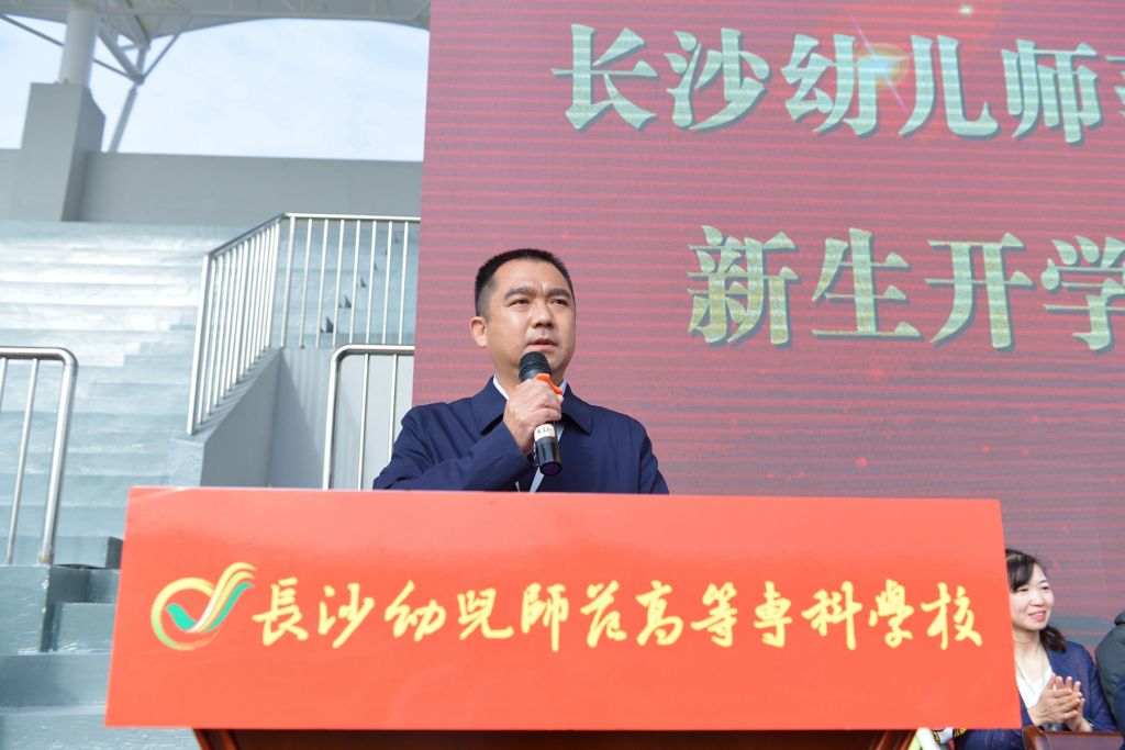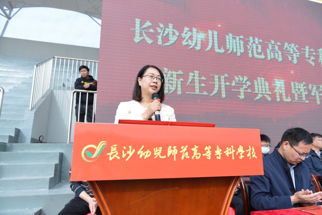 校长李毅致辞并作军训动员。李毅向新同学们简要介绍了长沙幼师高专的发展历程和红色传承。他指出,党的二十大即将召开,当下是中华民族伟大复兴的时代,是教育强国主题鲜明的时代,是有志青年中流击水的时代,同学们要以中国志气彰显青春担当、以中国骨气挺起精神脊梁、以中国底气赢得美好未来,勇担“教育强国”的重任,兑现“强国有我”的誓言,做一名志气高、骨气硬、底气足的新时代大学生。